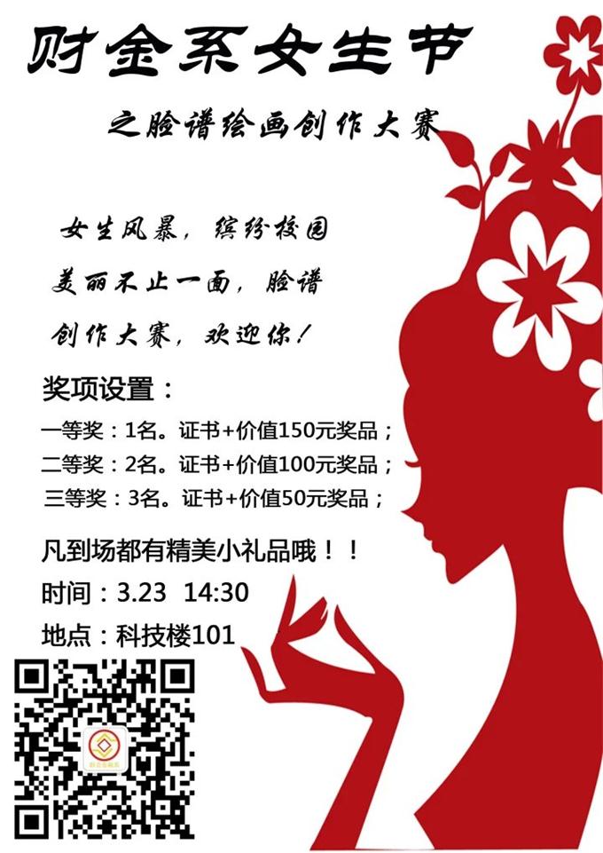 女生节之“脸谱”绘画创作大赛 时间:2016-03-09 22:36 女生节之“脸谱”绘画创作大赛 3月9日,以“女生风暴,缤纷校园”为主题的“脸谱”绘画大赛正式展开宣传工作。此次大赛,旨在丰富大学的校园生活,宣传中国传统文化,展示中国风采并号召全体学生在当今文化背景下勿忘经典,担负起时代赋予的弘扬中华传统文化的重任,通过亲自绘制脸谱,更深层次的去感受中国文化的魅力所在,将创意与个性浸入到脸谱创作上。有兴趣的同学请踊跃报名,展示你的独特风采。 (责任编辑:朱捍卫)