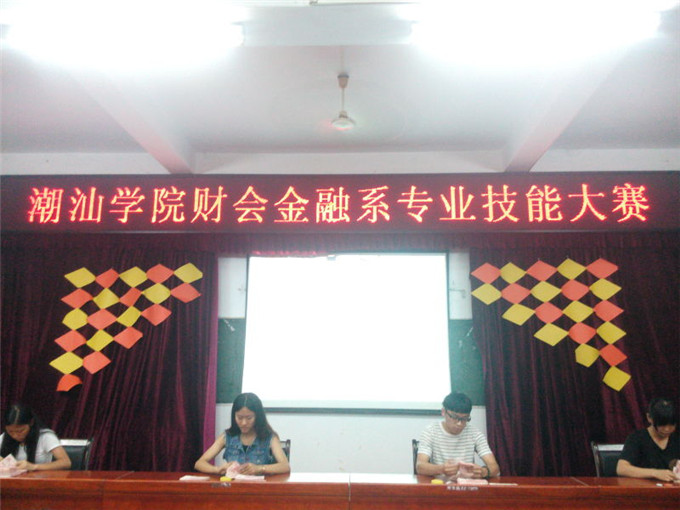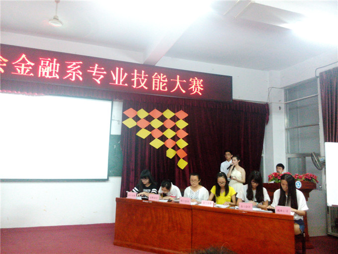 525日晚,我系在科技楼101隆重举办了财会金融系第一届会计专项技能大赛决赛。本次大赛特约嘉宾有督导室主任张桂春,实训课科长操龙刚,经管系主任李晓艳,商贸系主任郑重,财金系主任张文洲,以及财金系全体教师。