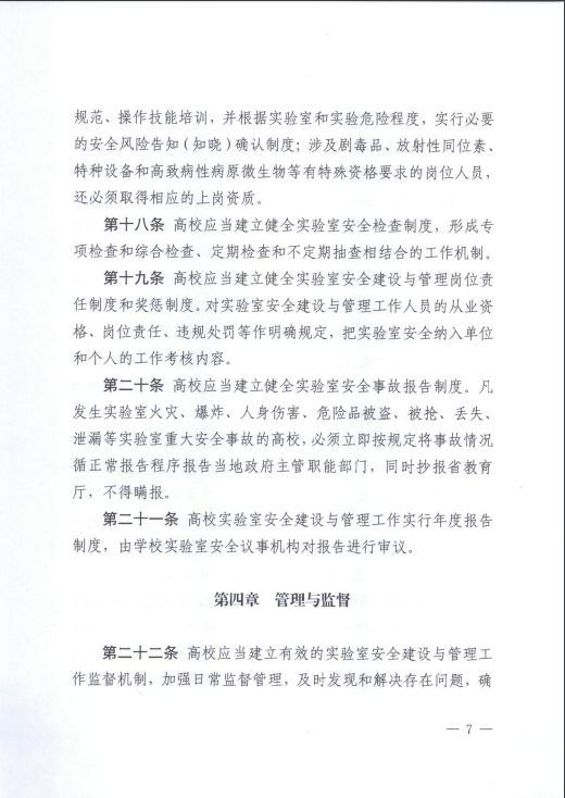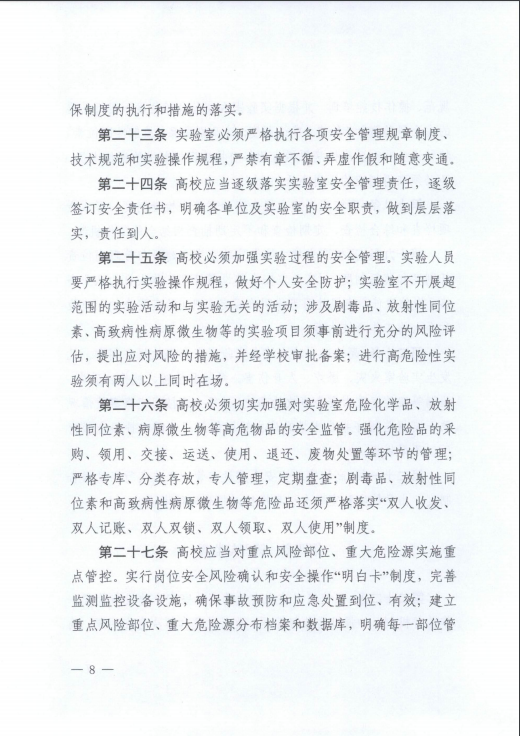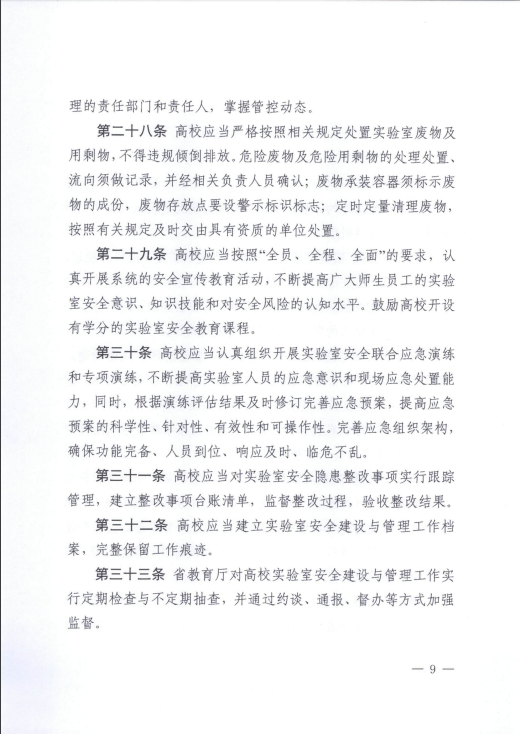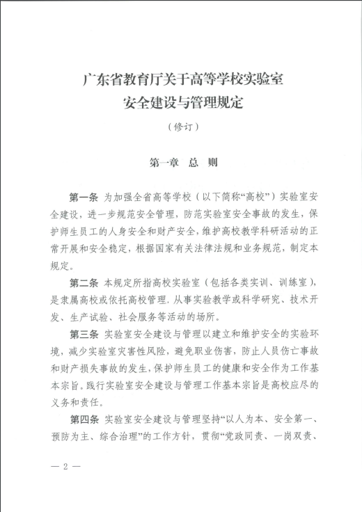 广东省教育厅关于高等学校实验室安全建设与管理规定(修订)