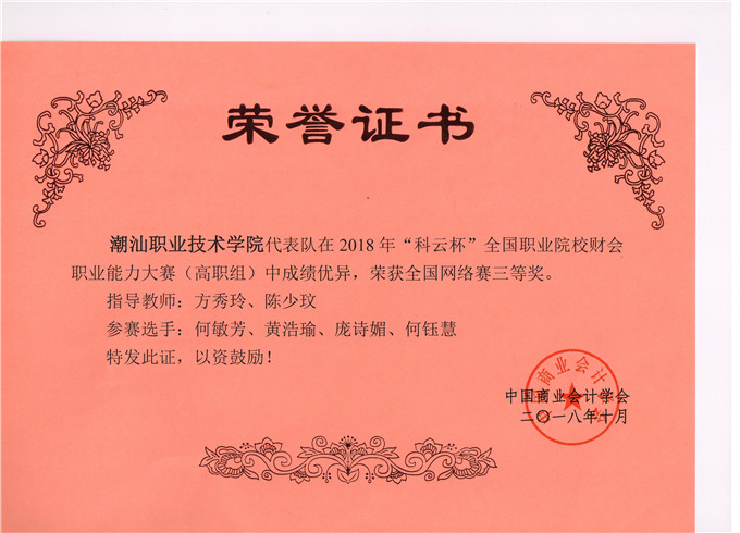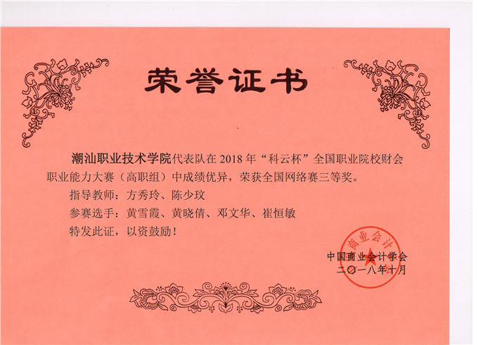 喜讯——我院学子荣获 “科云杯”全国职业院校财会职业能力大赛三等奖