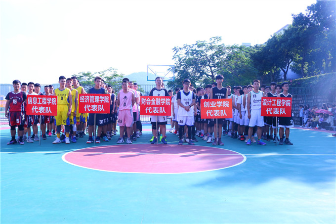 | 11月14日下午,我校在篮球场举行新老生篮球赛开幕式。出席本次新老生篮球赛的嘉宾有潮汕学院团委书记钟逍彬、郑泽敏老师、孙嘉达老师、各二级学院团总支书记、辅导员以及六大组织主席团和三个团委直属部门主席团、各二级学院学生会主席团。