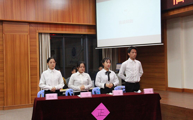 信息工程学院团总支书记袁润担任本次辩论赛主持人,宣读比赛规则,分四个环节进行: