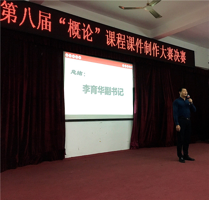 5月7日晚上,潮汕学院思政部在科技楼101顺利地举办了第八届“概论”课程课件制作大赛决赛。出席本次活动的评委嘉宾有潮汕学院党委副书记李育华、思政部刘冰青以及人文学院各位老师。来自各二级学院的学生也积极前来观看比赛,现场座无虚席。