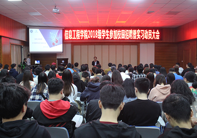 此次动员大会圆满结束!通过此次动员大会,为即将毕业的学生指明就业方向,为实习工作的顺利进行奠定基础。希望信息工程学院2018级毕业生能用自己所学的专业知识,找到自己心仪的岗位。希望各位学生以饱满的热情投入到生产实习当中,在实习期间牢记使命、虚心学习,为学院增光,为学校添彩。 (责任编辑:朱捍卫) |