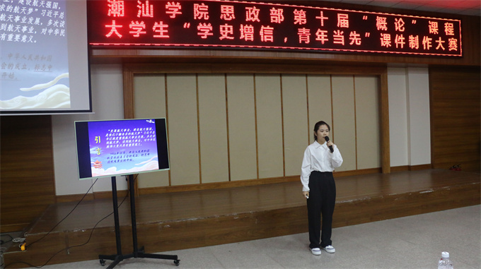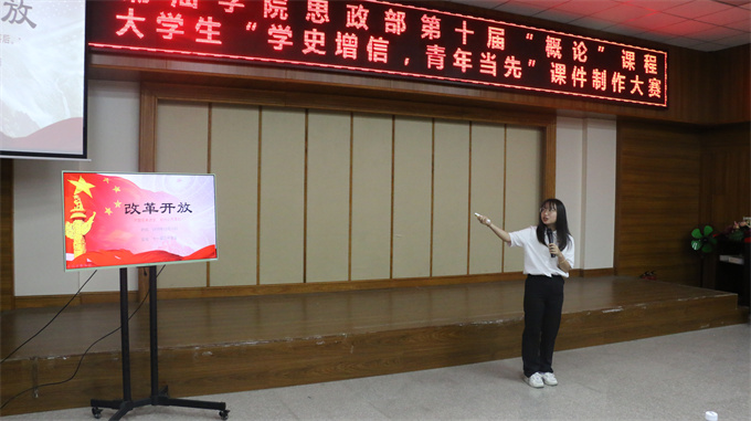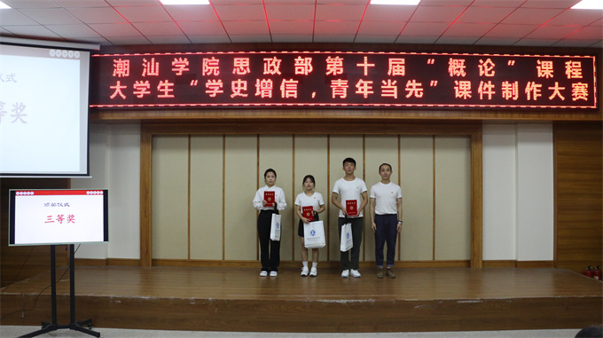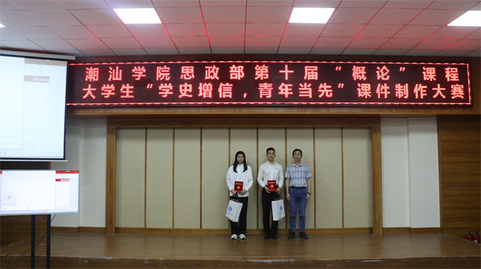 | 5月27日下午,思政部第十届“概论”课大学生“学史增信,青年当先”课件制作大赛在第一报告厅举行,出席比赛的嘉宾有学校党委副书记李育华,思政部主任、人文学院院长黄海宏,人文学院团总支书记余佳璐。本次比赛的评委有学生工作部副部长、团委副书长陈楠、人文学院党总支书记谢怀林,思政部副主任、人文学院院长助理陈凯萍,思政部教师陈镇鸿、赵毓珩、林雯虹,人文学院教师李念、黄偲偲、罗冬妍、周啸生。 比赛开始,黄海宏院长致辞,他表示课件制作大赛是根据教育部新时代高校思想政治理论课教学基本工作要求,开展专业思想政治理论课实践教学,旨在增强广大同学对思想政治理论课的兴趣和参与度,积极推进思政课改革的探讨,同时提升学生多媒体课件制作水平和动手能力。希望通过比赛,能促进新时代的青年学生不断坚持学史增信,坚定理想信念,在实现中国梦的实践中放飞青春梦,做马克思主义的坚定信仰者,做新时代的奋斗者。 比赛过程中,每一组选手都能对所选主题进行充分的解说和课件设计制作特色的展现,比赛内容丰富,讲解精彩,表现突出,展示了我校学生良好的风貌。 各组作品展示完毕,思政部陈镇鸿老师代表评委们对参赛作品进行点评。他首先强调了本次比赛的意义,对各位同学积极参与比赛表示欣慰。接着,他认为选手们的课件主题独特,分各个历史时期进行纵向陈述,同时知识点又进行横向讲解,囊括了社会、政治、经济、文化的内容,课件制作技术高超,页面精美。 经过了各组一番激烈的角逐,以及评委们公正公平的评比,最终比赛结果出炉了。21级网联班张湘涛组《揭西红色故事》在此次比赛中脱颖而出,夺得一等奖,21级创业2班黄意炜组《三湾改编》、21级电商班陈淑君组《遵义会议》获得二等奖,21级学前教育1班林培贤组《航天梦添彩中国梦》、21级商英跨境班邓舒丹组《九一八事变》、21级软件班谢晓锋组《学史增信,青年当先》获得三等奖。 最后,校党委李育华副书记作总结讲话。他对比赛组织所取得的效果给予充分的肯定,也对同学们的表现给予较高的评价,同时也给在座的师生提了三点希望:一是希望把被动学习转变为主动理解;二是希望能把短期活动变为长效机制;三是希望从增信感知转变为筑梦行动。 作为“毛泽东思想和中国特色社会主义理论体系概论”课程的实践教学环节,本次比赛有效提升了广大同学对思想政治理论课的兴趣和参与度,积极推进了思想政治理论课教学改革的探索,更提升了广大学生多媒体课件制作水平及动手能力。 |
