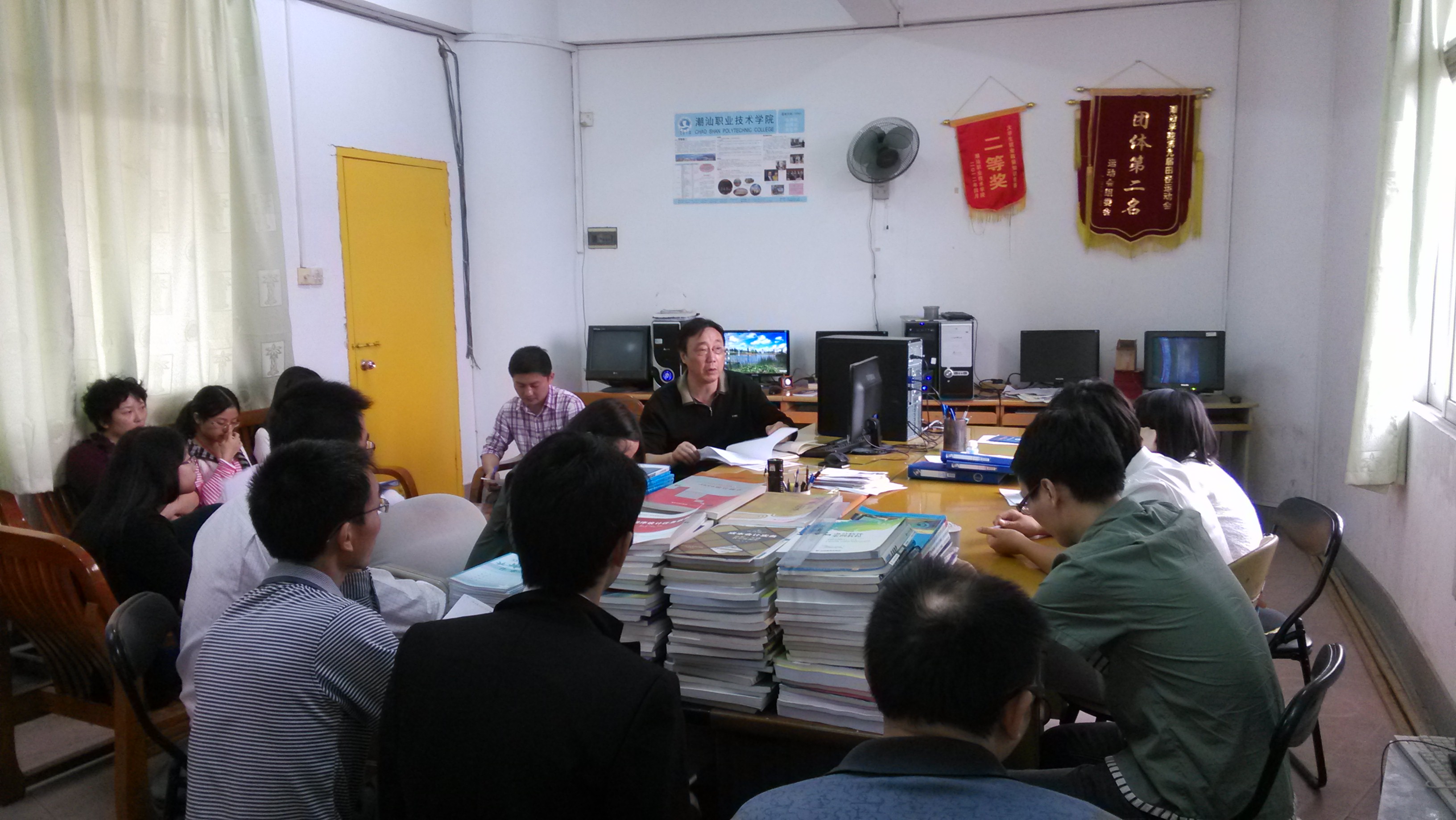 会上,樊跃平主任紧紧围绕魏副院长《在2013年招生工作总结暨2014年招生工作动员会的讲话》召开讨论,会议主要围绕的个方面分别是: 1. 统一思想,使各位老师充分认识招生工作的重要性; 2. 客观的评价了2013年招生工作,肯定我系所取得的成绩,鼓励各位老师应再接再厉,为2014的招生工作出谋划策; 3. 全面分析2014年的招生形势,鼓励全体老师迎难而上。 4. 明确招生工作不仅仅是招生部门的工作,而是我们每一个“潮人”的责任,在内涵建设方面,教学质量对生源也有一定的影响力,吸引力。 5. 进一步明确职责,鼓励全体老师全力以赴,争取实现2014招生目标。 在樊跃平主任的谈话之后,我系具有丰富招生工作经验的陈清雨老师分享了他之前招生的一些方法和技巧,随后全体老师进入激烈的讨论探讨之中。 进过本次会议,