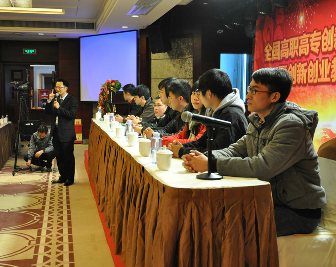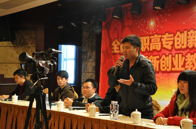全国高职高专创新创业教育协作会2013年年会现场(五) 时间:2014-01-18 14:31 创业学院院长颜惠雄主持学生创业经验分享 颜惠雄逐一介绍台上学生 参会代表向学生提问(一) 创业优秀学生回答参会代表提问(一) 参会代表向学生提问(二) 创业优秀学生回答参会代表提问(二) 参会代表向学生提问(三) 创业优秀学生回答参会代表提问(三) (责任编辑:admin)