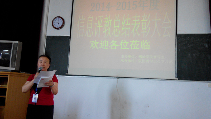 2015年6月18日16:00,我院在科技楼205召开了2014—2015学年教学信息工作会议暨优秀信息员表彰大会,全体学生信息员参加了本次大会,督导办何主任和系部各兼职督导老师出席了会议。
