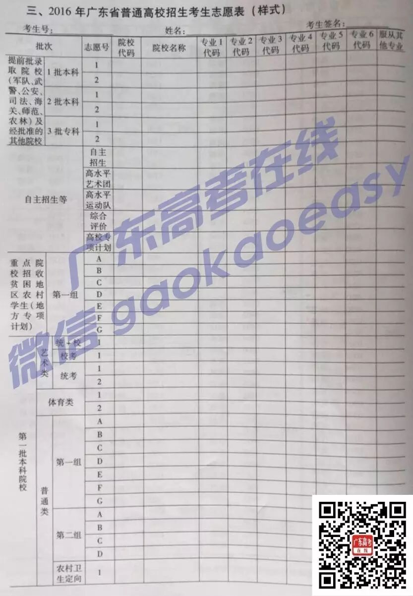以下是《2016年广东省普通高校招生考生志愿表》,与去年相比较,今年的情况如下: