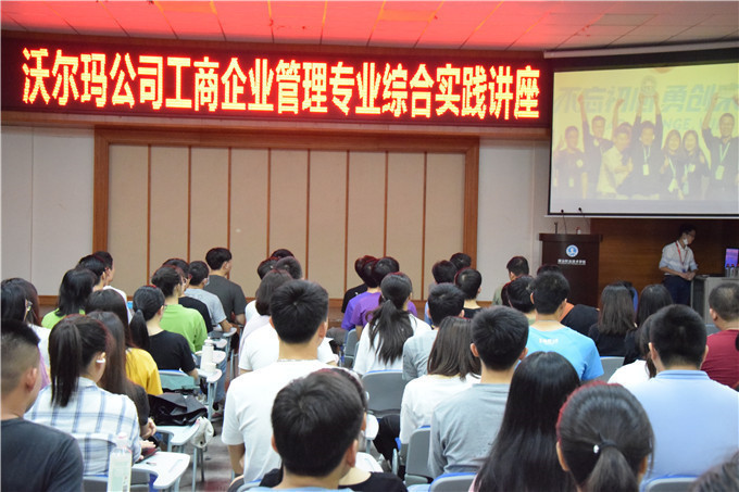 经济管理学院举办管理类专业知识讲座 2020年10月15日-16日,经济管理学院在第二报告厅举行了沃尔玛公司工商企业管理专业和人力资源管理专业综合实践讲座。18级工商企业管理专业和18级人力资源专业全体学生参加了本次讲座学习 。 沃尔玛普宁分店总经理龚艳宏和沃尔玛普宁店人力资源部庄俊鸿分别为同学们授课。 龚经理就以下几点为同学们进行分享: 1.通过案列给同学们介绍管理者的定义。 2.设立目标 3.作为管理者要懂得沟通和倾听员工的反馈。 庄经理主要从人力资源角色定位、人力资源策略定义、和人力资源六大模块来做系统介绍,让同学们对人力资源管理有一个明确的角色定位,对如何吸纳、留住和发展人才有具体概念。 本次讲座主讲嘉宾分享干货满满,会场上多次响起热烈的掌声,讲座后同学们纷纷表示受益匪浅。