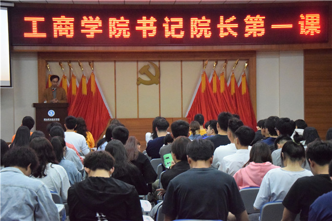 3月17日晚上,工商学院在第一报告厅举行了工商学院书记院长第一课。工商学院院长张文洲,党总支书记尹华根分别为同学们授课。
