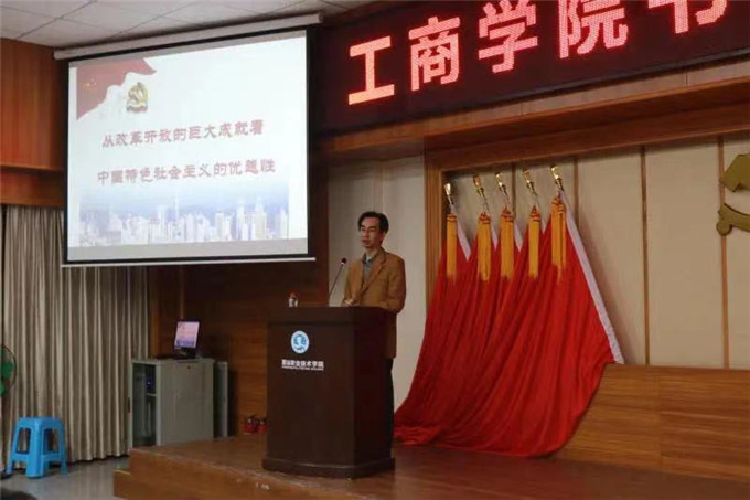 张文洲院长以改革开放的巨大成就看中国特色社会主义优越感为主题,为同学们讲授了改革开放以来中国取得的伟大成就。