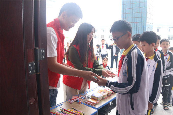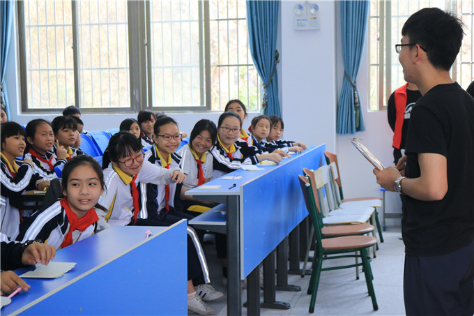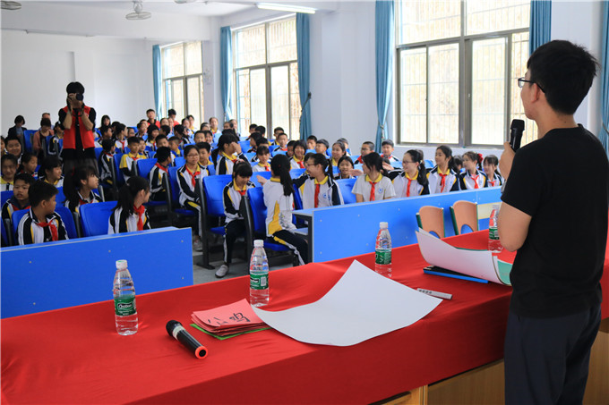 潮汕职业技术学院工商学院党总支以党史学习教育为契机,坚持街、校、社会组织联动,将党史教育渗透到学科德育教学支教活动里面。工商学院党总支书记尹华根组织全体教师党员、学生党员和学生会骨干一起前往贵政山小学开展党史教育活动,让少先队员们学党史、担使命,扣好青少年人生第一粒纽扣。 2021年4月15日上午,在潮汕职业技术学院党委的指导下,一场主题为“大手拉小手,一起跟党走”的党史教育活动在贵政山小学大礼堂隆重举行。此次活动由潮汕职业技术学院工商学院党总支与贵政山小学联合主办。潮汕学院党委委员、学工部部长兼团委书记钟逍彬、组织部长张爱国参加了此次党日活动。 学工第三党支部书记陈金辉同志用“我会讲故事”的小游戏开场带动会场气氛。 以生动活泼的形式带领少先队员们认识国旗、党旗、团旗、队旗和国歌,让少先队员们了解党团的历史,让在场的少先队员们感受在历史卷轴的大江大河中,体味浩然正气,明白没有共产党,就没有新中国。我们今天的幸福生活,都是先辈们一代又一代奋斗出来的,我们作为社会主义接班人,应该勇担重任,好好学习,天天向上。 活动中工商学院党总支的各位党员同志和学生会骨干给参加活动的200位少先队员们赠送了学习用品和小礼物,并与他们一起开展了“猜猜我是谁”的游戏,会场气氛再次被推上高潮。 活动结束后,全体党员、学生会骨干与贵政山小学领导老师合影留念。此次党日活动虽已圆满结束,党史学习活动还将继续,工商学院党总支将不断加强党史学习活动,让红色基因延续,薪火相传,初心永不忘。