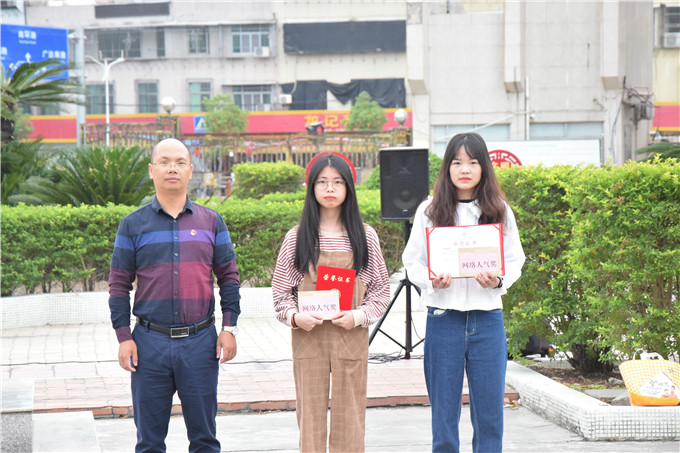 4月19日上午我院在潮韵广场举行升旗仪式 工商学院全体教师和学生参加了本次升旗仪式 国旗护卫队出旗 升旗仪式开始 接着由党总支书记尹华根作国旗下讲话 他演讲的主题是珍惜时间,希望同学们要培养良好的学习习惯和学习方法,能对自己严格要求,规范自己学习生活,学会独立思考,独立完成问题,持之以恒,养成思考的习惯。并希望同学们能够珍惜时间,珍爱明天,认真上好每一堂课,做好每一件事。 特大喜讯!特大喜讯! 潮汕职业技术学院工商学院将拥有自己的院徽了!!! 没错 你没听错 于本周星期一升旗仪式 经工商学院全体师生重重评选 最终决定该设计方案 设计理念 院徽整体设计为圆形,体现了工商学院“阳光、自信、团结、进取”的形象,喻示着工商学院是一个具有极强的向心力和凝聚力的集体。中间的图标是以工商两字上下合体而成的,而院徽整体颜色设计采用了红色为主体,以白色为底色。因为红色寓意热情、奔放、活力、斗志,也代表党和国家的关怀,学生在党和国家的关怀下,在阳光的照耀下健康的成长。四周一环中的英文是以潮汕职业技术学院工商学院的英文名称而围成,能让大家更加一目了然,直观了解该徽为工商学院院徽。 获奖名单 第一名 19级创业1班肖天慧 由院长张文洲颁奖 网络人气奖 20级人力1班 郑少丽 19级市营班 郝佳燕 19级会计财务班 刘嘉勋 由党总支书记尹华根颁奖 优秀奖 20级财务班 黄颖莹 20级会计班 张海婷,梁晓玲 20级药质2班 郑少玉 19级物流班 谢植鹏 19级动漫1班 连锐滨 由院长助理方秀玲颁发