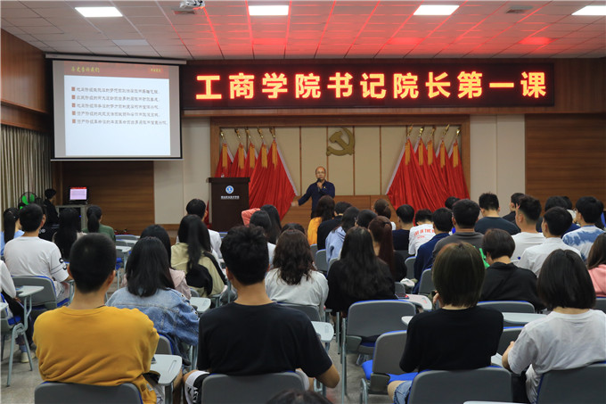 3月17日晚上,工商学院在第一报告厅举行了工商学院书记院长第一课。工商学院院长张文洲,党总支书记尹华根分别为同学们授课。 张文洲院长以改革开放的巨大成就看中国特色社会主义优越感为主题,为同学们讲授了改革开放以来中国取得的伟大成就。 尹华根书记从中国共产党的发展历史出发,为同学们开展了党史学习。 本次书记院长第一课,让我们青年学生一代更好地学习党史国情,并且学以致用。对继承和发扬光荣革命传统和党的优良作风以及提高大学生的自身的认识能力和处理问题能力有着极大的帮助。