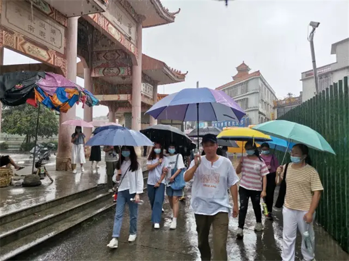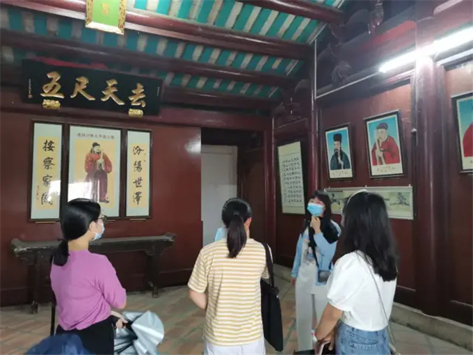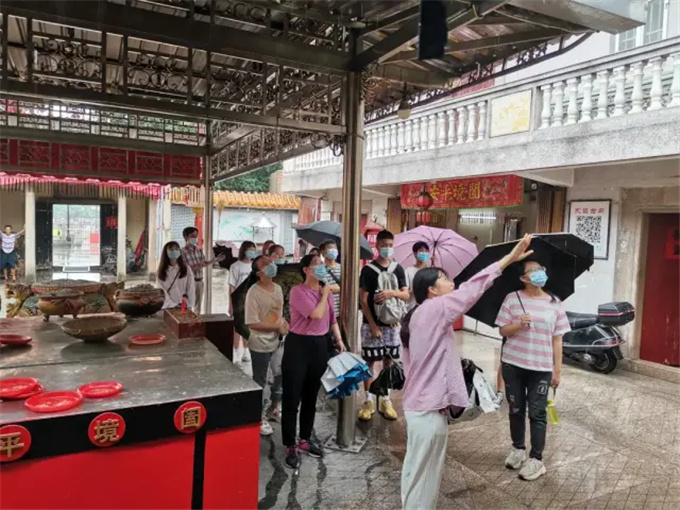 为提高旅游管理专业学生的专业性知识,增强专业实践教学,6月1号下午,工商学院院长张文洲、旅游管理专业老师林紫珊、林练芳带领2019级旅游管理班全体学生前往揭西县棉湖镇,实地参观考察永昌古庙、郭氏大楼、兴道书院,并与揭西县新世纪国际旅行社有限公司洽谈校企合作。 由学校大巴接送到目的地 到达目的地 由揭西县新世纪国际旅行社有限公司的导游带领前往永昌古庙 在导游的讲解下,同学们了解到永昌古庙的由来,经典故事,也同时了解到一些永昌古庙的供奉、占地面积,其中的妈祖宫、玄帝古庙各有千秋。在永昌门外,还有“流芳”亭也是古色古香。 随后,一行人来到了郭氏大楼(又名郭氏大夫第),导游介绍道,郭氏大楼建于清雍正十一廿(1733年),竣工于1746年,享有“潮汕居民古建筑之最”的美誉。 同学们还了解到100间房的最隐秘的房:井底陋室,了解到清代监察御史邱玖华“去天尺五”之题匾以及飞檐凌空、墙后二尺、大门石圆、构筑精美、楼高二层、高脊巍峨、楼前有长廊,外围栏杆,凭栏远眺,极目达乌犁古塔的后楼。原有圣旨牌一块,两边有木云。 此次行程的最后一个景点——兴道书院,在导游的介绍下了解到兴道书院的过去以及1925年国共合作的曾进与蒋介石与金和区大公山打败军阀陈炯明,此次为威震海内外的棉湖战役。 在此次见习和参观中,同学们纷纷表示,收获满满,期待未来有更多的校企合作,推进产学融通!