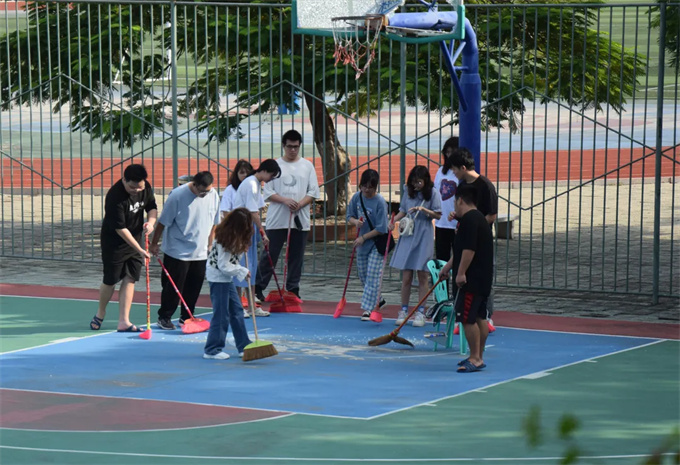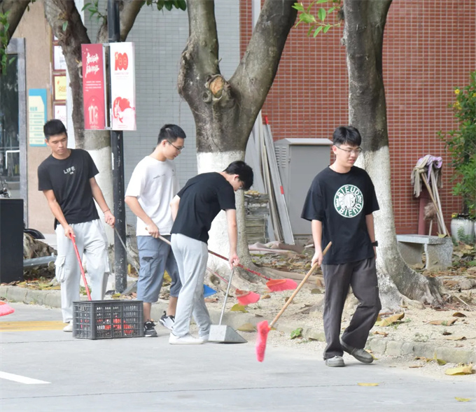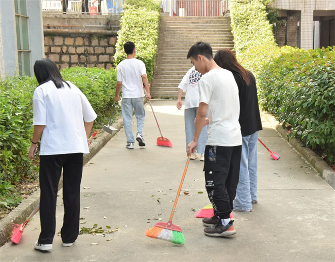 为了培养学生们的劳动意识,维护校园美丽环境,为全校师生创造一个美丽、卫生、整洁、舒适的学习生活环境,10月20号下午,工商学院于潮韵广场举行了本学期第一次校园清洁志愿劳动活动。 活动过程中同学们拿着清扫工具,分工协作,热情高涨,以积极认真的态度参与其中,不放过每一处角落,全面细致地清扫校园垃圾。