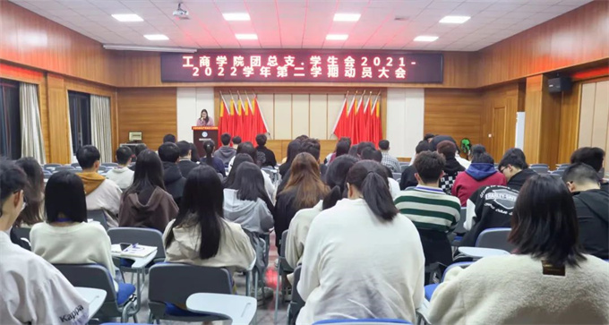 为进一步推进工商学院团学队伍的工作建设,2022年3月8日晚,工商学院团总支·学生会在第一报告厅召开了2021-2022学年第二学期动员大会。工商学院团总支书记陈金辉老师,学生会执行主席林思华,张光浩以及全体团总支·学生会成员参加了动员大会。 会议上主席团针对团学内部存在的问题进行强调并提出了要求,针对工作纪律和工作积极性以及礼仪礼貌问题进行了要求,并对本学期各部门工作进行了布置。 团总支书记陈金辉在会议上强调:第一,团学成员们不管在学习上或者工作中都应注重时间观念,养成良好学习和工作习惯;第二,希望各干事提高工作积极性,提高工作效率,以饱满的热情投入到工作之中,完成各项工作。最后,希望全体团学成员要加强团队建设,提高团学队伍的凝聚力。 新学期工商学院团总支·学生会将继往开来,完成好各项工作任务。