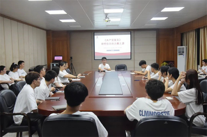 2022年5月23日晚上,工商学院团总支书记陈金辉在潮汕职业技术学院会议室为工商学院青马班学员带了“《共产党宣言》--理想信念的力量之源”专题授课。 课堂上,陈金辉老师从西方媒体对马克思和《共产党宣言》的评价,《共产党宣言》的写作背景及发表,《共产党宣言》的基本思想和主要内容,以及第一本中译本《共产党宣言》的诞生四个方面带领同学认识《共产党宣言》。学员们都聚精会神聆听老师的讲解。 课堂最后,陈金辉老师和学员们一起朗读了《共产党宣言》节选内容并观看歌曲《国际歌》视频。 陈金辉老师表示,作为一名青马班学员,我们要坚持马克思主义为指导,通过不断学习马列经典著作,不断武装和充实自己的思想,坚定理想信念,不忘初心使命。 青马工程|理想信念的力量之源