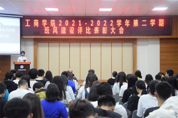 2022年6月15日下午三点,工商学院在第一报告厅举办了2021-2022学年第二学期班风评比表彰大会。班风是由班级成员共同营造的一种集体氛围,反映一个班级的精神面貌,内在与外在的共同表现,引领着班级未来的发展方向,对于班级建设具有重要的导向作用。良好的班风有助于弘扬正气,形成积极向上的精神风貌,和谐友爱的氛围,可以促进学生成为全面发展的人,有助于青年学习和思想的正确导向,因此培养一个良好的班风十分重要。 出席本次会议的领导老师 工商学院院长张文洲 工商学院党总支书记尹华根 工商学院院长助理方秀玲 工商学院团委书记陈金辉 金融教研室主任刘嘉星 会计教研室主任卢丽颖 管理教研室主任林盛伟 工商学院教师袁洁冰老师 辅导员曾妍老师 辅导员欧芬婷老师 出席的领导老师 20级和21级各班级班干部代表参加了本次评比表彰大会。 会议由学习部干事张继凤主持 第一项议程 介绍班风评比实施细则和教师反馈表内容 潘春林同学介绍班风评比方法及具体实施的细则 蔡楷宗同学介绍教师反馈表内容 第二项议程 宣读班风评比获奖班级 第一名 20食检班成绩77.20分 第二名 20人力1班成绩76.76分 第三名 20人力2班成绩76.60分 第三项议程 颁奖环节 院长助理方秀玲为获得第三名的班级颁奖 尹华根书记为获得第二名的班级颁奖 张文洲院长为获得第一名的班级颁奖 第四项议程 第一名的班级代表李绵同学分享他们的班级经验 班级代表李绵同学 第五项议程 会议总结 张文洲院长为本次班风评比作总结,对获奖班级表示祝贺感谢。祝贺他们获得了前三名的好成绩,同时感谢他们为学院的班风学风的建设起了带头作用。 张文洲院长对所有班级代表提出了两点希望: 1.希望各班级要明确奋斗目标,沿着班风评比的评比标准,班干部们要带领班级努力奋斗,共建良好的校园学习氛围,同时班干部也应在班级里发挥模范带头作用。 2.希望同学们在课余的校园生活中,要养成良好的生活习惯,养成文明礼仪的素养。 工商学院院长张文洲讲话 实践是检验真理的唯一标准,一切重在行动!同学们要共同努力,为营造良好班风学风而加油! 班风评比细则如下: 教师评分:教师评分是本项评比较为重要的一个环节,各任课教师主要从学生的学习态度、上课学习状况、上课表现情况三个小点综合表现进行评分。本项评比内容占此实施细则的40%; 上课考勤:此项为各班班干每天登记本班同学的出勤情况进行评分,出勤情况包括事假,旷课,迟到现象等。本项评比内容占此实施细则的20%; 早读考勤:由院系学习部每天早读进行早读考勤检查,每周进行统计并发通告,其每周的出勤情况就作为此项评比内容的依据。本项评比内容占此实施细则的20%; 活动竞赛:此项评比内容为个人或班级参加工商学院或校级举办的活 动。在比赛中表现优秀并且获奖的进行加分统计,加分如下: ①以班级为主体:第一名(一等奖)每次加3分、第二名(二等奖)每次加2分、第三名(三等奖)每次加1分、优秀奖每次加0.5分。 评班风,促团结,营造好学风