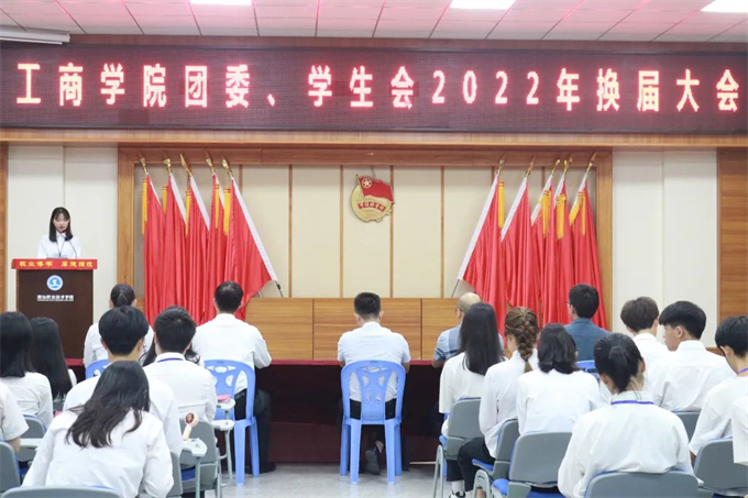 2022年6月22日下午,潮汕职业技术学院工商学院团委直属部门、学生会2022年换届大会在第一报告厅举行。
