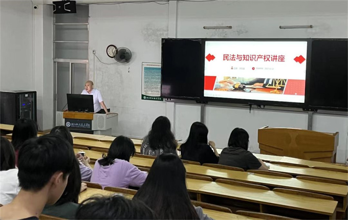 《民法与知识产权》专题讲座在我院成功举办 作为我院“三品一械”知识产权营运专员实务培训班系列专家讲座之一的《民法与知识产权》,于11月12日在我校科技楼105阶梯教室成功举办。本次讲座特邀广东文涵律师事务所主任方文喜律师为我院20级食品检验检测专业和药品质量与安全专业的80多名师生授课。 方律师用专业的知识,富有哲理的语言,鲜活生动的案例,深入浅出地为参加培训的师生诠释民法与知识产权相关规定和基本知识,从不同层面分析民法典的意义、民法典的立法过程、民法典中关于知识产权的相关规定及典型案例分析等多个方面的内容。 通过此次专题讲座,提升了同学们的知识产权理论知识,增进了大家对知识产权实务的了解。