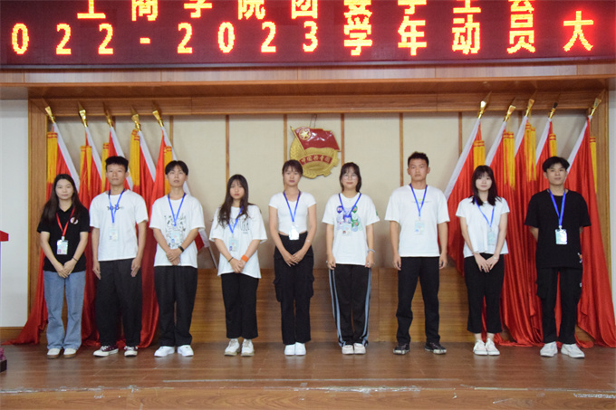 叶落惊秋,丹桂飘香,十月,正是硕果累累的好时节。 2022年10月14日下午,工商学院团委直属部门、学生会在第一报告厅组织召开了2022-2023学年动员大会。 出席本次会议的领导老师有: 工商学院院长张文洲,党总支书记尹华根,团委书记陈金辉。 本次大会由学生会学习部负责人张继凤主持。此次大会共六项议程。 大会第一项议程 奏团歌 动员大会在雄伟激昂的团歌中拉开序幕 大会第二项议程 工商学院团委书记陈金辉宣读新干事名单 工商学院团委直属部门 宣传部:宋晓诗、郑文乐、洪妍、黄锴华、张喜霞 、李丽花 、曾淑盈、官营光、杨嘉欣、张巧茹 组织部:张美琦、曹佳莹、王涛、梁土珍、杨冬妮、何智浩、谢斌、张伟志 文娱部:黄文思、李卓、黄晓纯、吴科霖、刘汝莹、徐林峰 体育部:徐壬未、陈雪凤、袁煜政、陈秒书、张万城、詹佳琳、黄静瑶、萧侢武 工商学院学生会 学习部:吕纯钿、黄俊鑫、郑炫博、黄运富、张佩敏、周星霞、曾宝燕、徐楚凡、黄倩怡、陈佳华、林良鹏、唐晓玲 办公室:黄琪好、欧阳坚、谢琼、苏凯旋、岑文诗、郭雅铉、李文雅 生活部:冯淑媚、陈鑫鑫、张哲桐、程安怡、卢锦彬、林煊杰、周文浩、黎红君 大会第三项议程 学生会执行主席张单嘉发言 大会第四项议程 新干事代表黄文思发言 大会第五项议程 一、学生骨干的角色定位。 二、当学生骨干的意义。 三、学生骨干的要求。 四、学生骨干在工作中的注意事项。 大会第六项议程 团学各部门负责人给新干事颁发干事牌