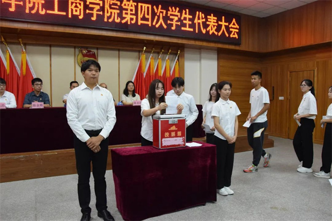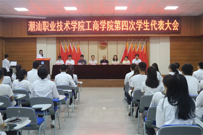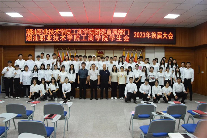 2023年6月26日晚上,潮汕职业技术学院工商学院第四次学生代表大会暨工商学院团委直属部门、工商学院学生会2023年换届大会在第一报告厅举行。