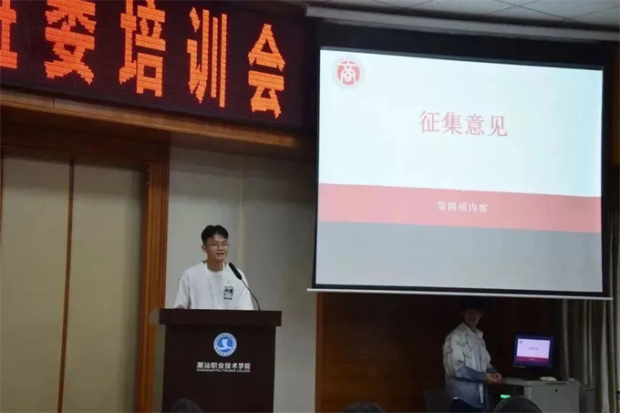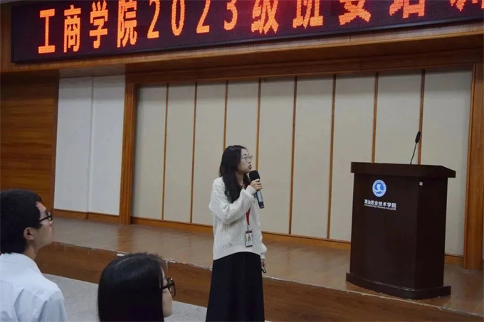 班委培训会|责任在肩 共学共进 为了后续相关工作的开展与落实,搭建好沟通桥梁,2023年11月14日,工商学院团学在第二报告厅开展23级班委培训会。会议由学生会主席团代表黄运富主持。 大会第一项内容 组织部部长张伟志 1.讲解智慧团建的使用方法与团支部专题学习的录入 2.团员组织关系的管理 3.每月团费的催缴以及督促每期青年大学习的学习情况 学习部部长郑炫博、周星霞 1.负责每周协助校团委学生会学习部考勤,每月制作教师反馈表。 2.定期举办班风评比会议。 生活权益部部长冯淑媚 1.介绍教室卫生评分标准。 2.定期开展校园卫生劳动教育。 大会第二项内容 征集意见 本次培训会加强了学生会与班委会的联动作用,为今后工商学院各项学生活动和工作的开展打下坚实的基础。也希望全体学生干部对工作要尽职尽责、积极向上,发挥好学校与学生之间桥梁、纽带的作用。在生活、学习中更好地为同学服务。