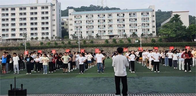 开跑前,同学们认真地做着热身运动,同学们认真的神色,是微微晨光里一道亮丽的风景线。