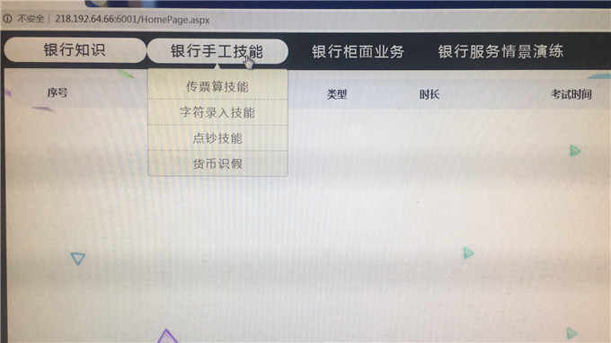 01.对私业务 (2)训练柜台业务个人业务系统的日常业务操作,包括个人储蓄开户、存取款业务操作、转账业务、挂失业务、销户业务、一卡通业务的操作;训练个人业务的特殊业务处理操作;训练个人代理业务的操作;训练银行卡开卡、还款及取现等业务操作方法; (3)训练柜台业务日终处理业务的操作方法,包括训练上缴未使用的重要空白凭证、现金入库及打印营业日报表等。训练部门轧帐、尾箱轧帐等日终处理的方法。 (2)训练柜台业务对公业务系统的日常业务操作,包括对公存贷业务的开户业务、一般活期及临时存款业务、定期存款业务、贷款业务、支付结算业务、代理业务、票据交换业务的、外汇业务操作; (3)训练柜台业务日终处理业务的操作方法,包括训练上缴未使用的重要空白凭证、现金入库及打印营业日报表等。训练部门轧帐、尾箱轧帐等日终处理的方法。