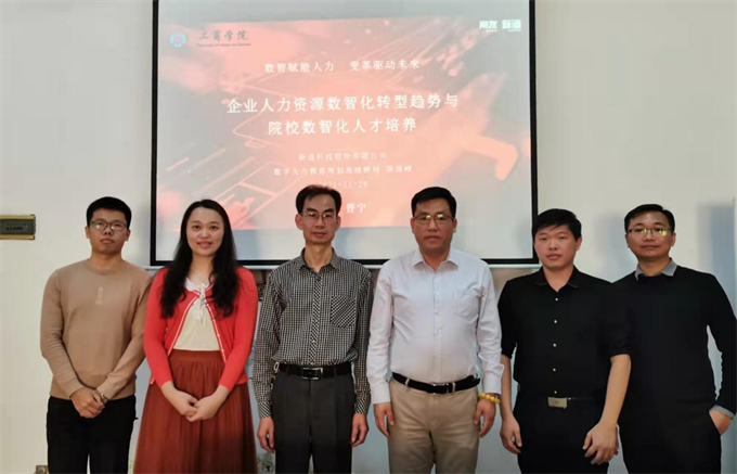 为了提高学生对人力资源管理专业前沿知识的了解, 帮助在校学生分析当前就业状况,指导大学生进行职业生涯规划,增强就业能力,11月24日,工商学院在综合楼B507举行人力资源管理专题知识讲座。本次讲座邀请了用友新道科技股份有限公司数字人力教育规划高级顾问-陈国峰教授来校主讲,我院张文洲院长、管理教研室林盛伟主任、部分专业老师和用友新道校企合作经理黄梓伟参加了本次活动。 陈国峰教授以“企业人力资源数智化转型趋势与院校数智化人才培养”为主题,以用友·新道数智人力的发展历程为例,与学生探讨新时代、新技术、新需求下的人力资源专业人才培养新模式,并分享了新道科技携手各大高校共同推进的数智化人力资源专业建设的优秀案例。 陈国峰教授指出,当下社会采用的是最新的“数字人力”理念,通过“理论+实践”的结合,培养人力资源专业的数字化意识与思维,并借助大数据分析工具发现、分析与解决企业人力资源管理问题的能力来提升团队成员间的沟通协作能力,是展示数字化能力的舞台。 他强调,数智化转型是企业的必然选择和发展趋势,人力资源也需要主动适应变化,从传统的事务型人力资源向战略变革引领型转型。他要求学生不仅要有人力专业理论功底,也要具备一定的数据思维和意识,能够学会利用数据分析,通过数据洞察发现企业人力资源运营中的问题和挑战,并解决问题。 通过本次的知识讲座,对学生深入理解人力资源管理相关知识起到了积极的推动作用,同时,让学生对于当前劳动力市场以及自身的职业和人生规划有了更加准确的了解和定位,为职业发展提供参考的方向,为毕业后走向社会打下坚实的基础。