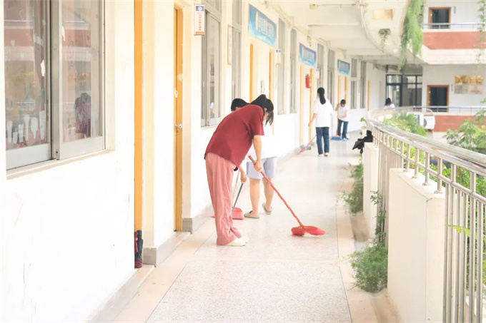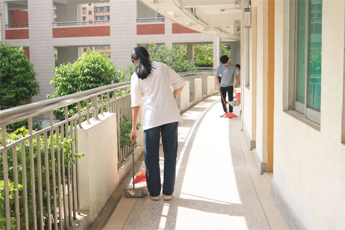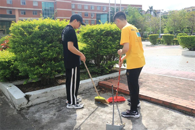 下午3点,同学们齐齐出动,手持清洁工具辗转在校园的各个角落,一丝不苟的进行清扫。