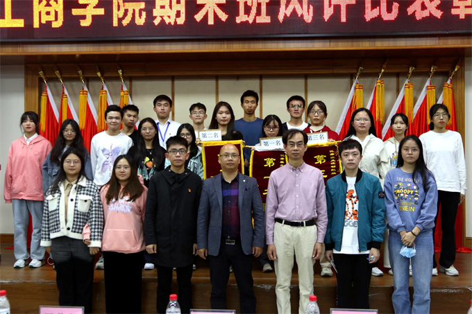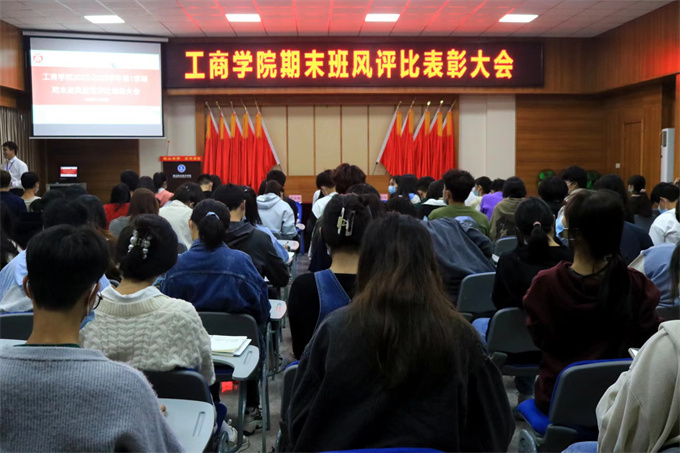 2022年12月9日下午四点,工商学院在第一报告厅举办了2022-2023学年第一学期班风评比表彰大会。班风是由各班级成员共同营造的一种集体氛围,反映了班级成员的整体精神风貌与个性特点,体现出班级的内在品格与外部形象,引领着班级未来发展的方向,对于班级建设具有重要的导向作用。良好的班风能给班级提供动力、维护力、凝聚力,能推动班级多数学生前进,可以促进学生成为全面发展的人,有助于青年学习和思想的正确导向,因此培养一个良好的班风十分重要。 出席本次表彰大会的领导老师 工商学院院长张文洲 工商学院党总支书记尹华根 工商学院院长助理方秀玲 工商学院团委书记陈金辉 辅导员曾妍老师 辅导员谢冰娜老师 辅导员陈思思老师 辅导员欧芬婷老师 辅导员陈泽翰老师 20级、21级和22级各班级班干部代表参加了本次评比表彰大会。 会议由学习部干事林良鹏主持 第一项议程:介绍班风评比实施细则和教师反馈表内容 学习部干事黄倩怡同学介绍班风评比方法及具体实施的细则 学习部干事黄运富同学介绍教师反馈表内容 第二项议程:宣读班风评比获奖班级 第一名 22级金融班成绩79.30分 第二名 22级工管班成绩79.23分 第三名 22级人力1班成绩78.90分 第三项议程:颁奖环节 院长助理方秀玲为获得第三名的班级颁奖 尹华根书记为获得第二名的班级颁奖 张文洲院长为获得第一名的班级颁奖 第四项议程:第一名的班级代表叶翠同学分享他们的班级经验 第五项议程:会议总结 张文洲院长为本次班风评比作总结,他对获奖班级表示祝贺和感谢。祝贺他们获得了前三名的好成绩,同时感谢他们为学院的班风学风的建设起了带头作用。 张文洲院长对所有学生会和班级代表提出了三点希望: 第一点,是对工商学院全体学生会干部,包括团委学生会和各班委所提出的要求。他希望全体学生会骨干、班委要以身作则,起带头作用,充分认识到班风评比的意义。 第二点,是对各班班干部提出要求。他希望各班班干部要带领班级同学认真、全面查找自身和班中存在的问题,制定计划和措施,明确努力的方向;特别是评分靠后的班级,要找出问题所在,采取措施加以解决。 第三点,是对全院同学提出要求。张院长强调,良好的学风可以帮助同学们健康、成长和进步,可以成就他们美好的未来。因此,希望每一位同学要以班风评比表彰为契机,查找自身不足,努力改正缺点,不断养成良好学风。 工商学院院长张文洲发言 大合照 实践是检验真理的唯一标准,一切重在行动!同学们要共同努力,为营造良好班风学风而加油! 各班成绩如下