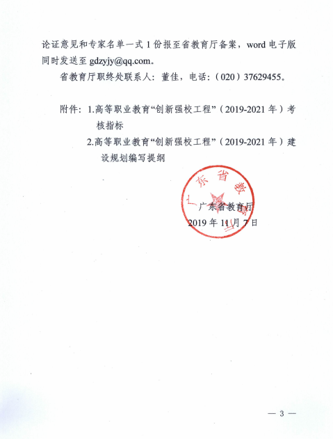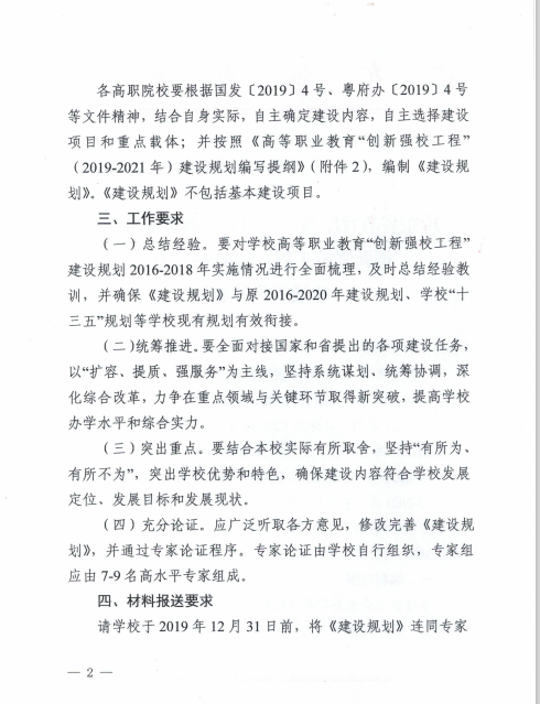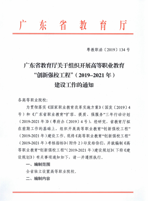 广东省教育厅关于组织开展高等职业教育“创新强校工程”(2019-2021年)建设工作的通知