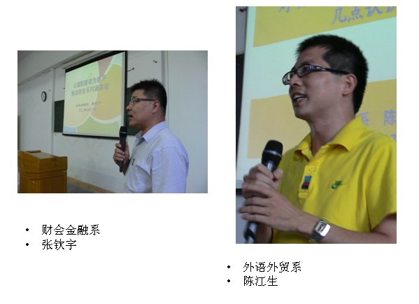 财会金融系张钦宇副主任与会上的教师们一起交流财经系在课程建设和教学管理工作中取得的宝贵经验,他结合财金系的现状,总结存在的问题,提出了以课程建设为抓手推动财金系内涵建设和教学资源库建设等改进措施。