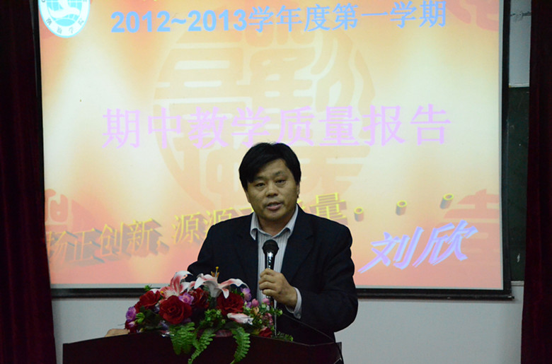 11月26日下午,我院2012-2013学年度第二学期期中教学检查质量报告会在科教楼101室召开。院长助理李松树、教务处副处长刘欣、督导室主任刘教林莅会,各系(部)主任、副主任、教务员、网络中心、专、兼职教师等参加了会议,会议由院长助理李松树主持。