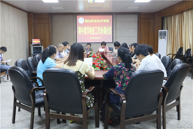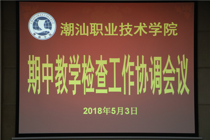 2018年5月3日,学院在二楼会议室召开期中教学检查工作协调会议,教学管理部副部长王燕娜、督导与师培中心主任张桂春、各二级学院(部)教学院领导及教研室主任等参加了会议。 会上,王副部长解读了《关于开展2017-2018学年度第二学期期中教学检查的通知》(潮院教[2018]6号)文件精神,对期中教学检查工作的重点及要求作了简要说明。接着,张主任解释本学期督导工作的分工情况,反馈近期督导听课评价情况,在肯定各院部督导工作的开展情况的同时提出相关工作要求及建议。最后,教学部相关老师在会上对教学运行情况、省厅信息化教学大赛情况作了简要说明。