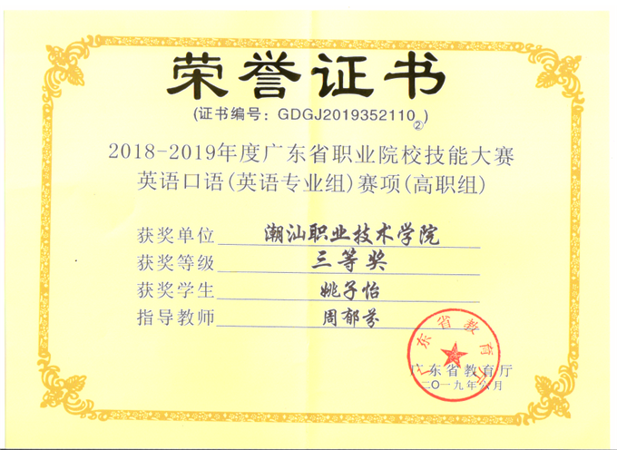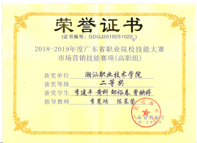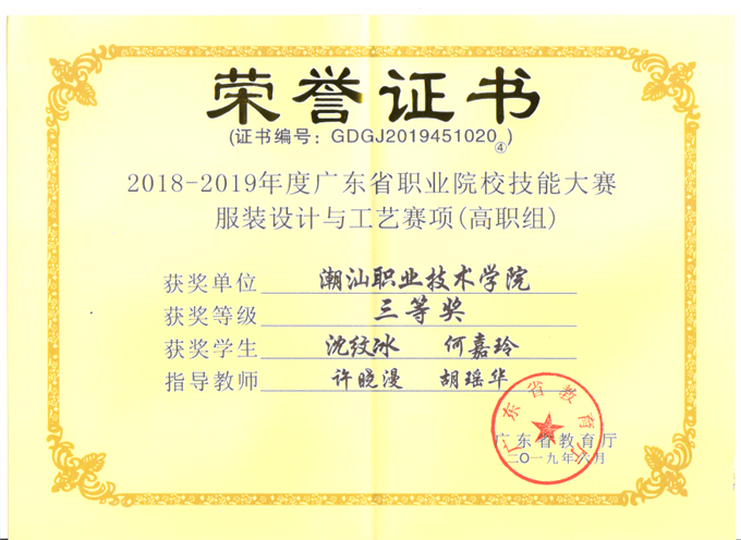 2018-2019广东省学生职业技能大赛中,我校喜获五个奖项,分别为一个二等奖和四个三等奖。 此次技能大赛我校荣获一个二等奖和四个三等奖,分别是:“市场营销技能”赛项二等奖;“建筑工程识图”赛项三等奖;“英语口语-英语专业组”赛项三等奖;“会计技能”赛项三等奖;“服装设计与工艺”赛项三等奖。 技能大赛的成绩是我院专业教学水平和人才培养质量的重要体现,是对指导老师专业能力的肯定,更是对学生各项专业知识和实验操作技能的考验。 经过此次比赛,我们收获了成绩,但也看到了不足,学院将进一步加大实践教学和技能竞赛的支持与投入力度,希望老师们不断提高教学能力,改善教学方法,不断提升学生的道德素质和实践动手能力,争取再创佳绩!