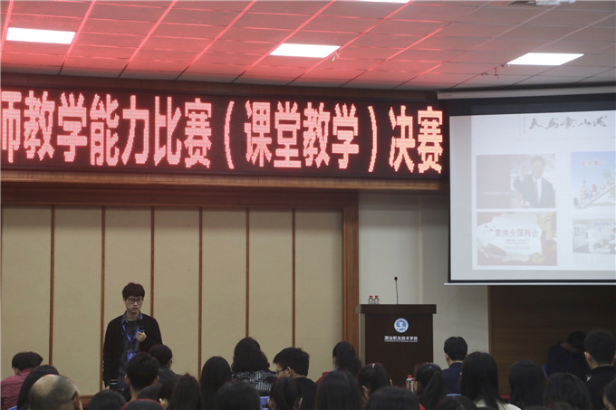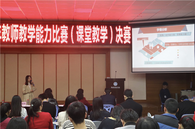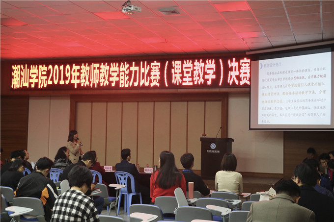 为促进教师课堂教学水平和质量的进一步提升,不断提高我校教师教学能力,2019年12月11日下午,教学管理部在第二报告厅举办潮汕职业技术学院2019年教师教学能力比赛(课堂教学)决赛,比赛由教学管理部王立舜老师主持。 本次教师教学能力比赛(课堂教学)决赛共有来自各二级学院所推荐的六位教师参加,经过紧张激烈的比赛,最终,经济管理学院陈曼蓉老师获得一等奖;经济管理学院张弛老师和人文学院郑晓岚老师获得二等奖;财会金融学院刘嘉星老师、创业学院蓝李蓉老师以及设计工程学院王期欣老师获得三等奖。 教学管理部王立舜老师主持 比赛评委 现场计票 评委和参赛教师合影