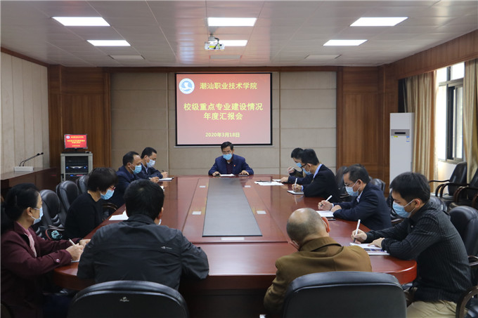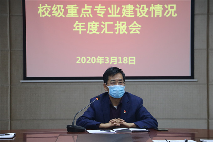 2020年3月18日上午,教学管理部召开校级重点专业建设情况年度汇报会,出席会议的有党委书记、院长齐广武、副院长魏跃进、院长助理颜惠雄、院长助理谢耿、动力发展部副主任李统亮、教学管理部副部长胡佑君以及各重点专业建设负责人,会议由教学管理部副部长胡佑君主持。