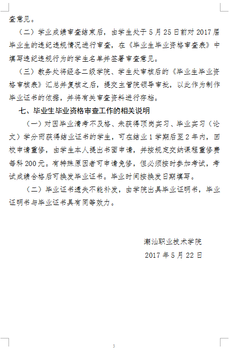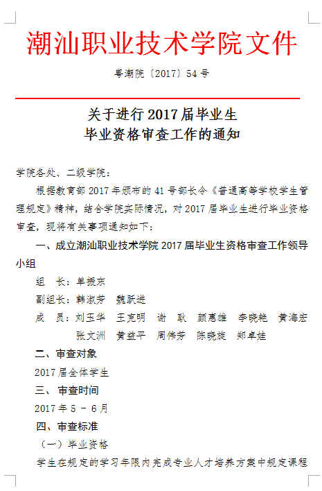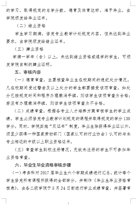 关于进行2017届毕业生毕业资格审查工作的通知