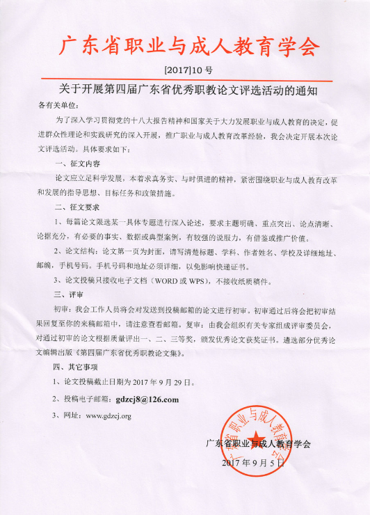 关于开展第四届广东省优秀职教论文评选活动的通知