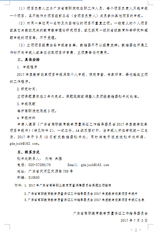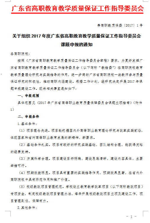 关于组织2017年度广东省高职教育教学质量保证工作指导委员会课题申报的通知