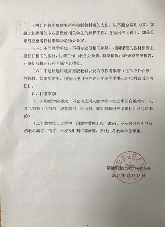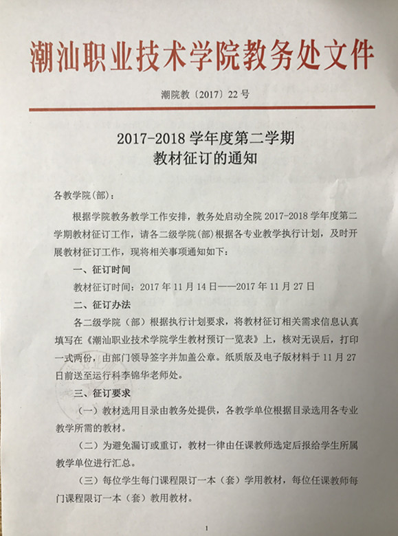 2017-2018学年度第二学期教材征订的通知
