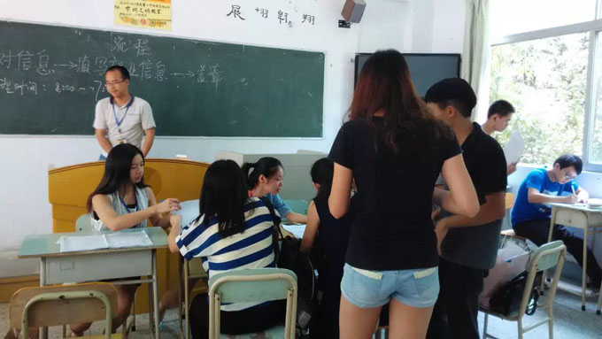 经管系派出4名专业教师协助就业处学生管理员迎接12级学生回校报到,为返校学生办理缴费和顶岗实习相关手续。两天来,教学楼B204和B205教室里人头攒动,笑声连连。学生们在注册报到的间隙,和老师们、同学分享各自的暑假社会实践的酸甜苦辣,每个人都从稚嫩向成熟又迈进了一大步,增添了对职业的自信和热忱。