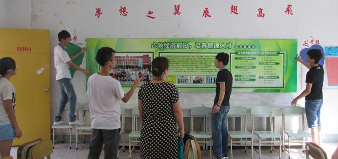 学生会各部门成员认真负责布置会场,李晓艳主任在现场观看,指出不足之处,与同学们一起讨论布置接待的细节。 张文洲副主任强调要高度重视新生的接待工作,要求全系上下必须树立大局意识和服务意识,通力合作,密切配合,积极行动起来,全力做好系里的迎新工作;要求全体教师以学生为本,明确责任,敢于担当,务必将工作落实到位,把问题全部准确解决。 要求系学生会各部门各尽其职,遵守纪律,举止端庄,服务周到,发扬奉献精神,营造温暖祥和的氛围,努力让迎新工作“热情热烈、有序高效、和谐安全”地进行。希望学生会各部门以饱满的精神状态,良好的工作学习作风投入到新学年的迎新工作中,细心耐心地完成份内工作,为经管系的建设和发展热心奉献。