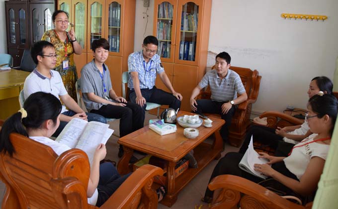 在听评的老师中有说课程比赛的一、三等奖获得者李冕鸿、曹凯老师,也有说课堂比赛的第一名李娜老师,他们用心听着吴老师对他们的讲评,不时点头。这是他们进步的源泉和动力。只要用心,必有回报。