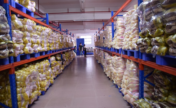 在经管系领导和物流产业学院师生的共同努力下,仓储中心一层货物殷实,接近十万件冬装井然有序叠放在货架上。基地各项生活设施、工作设备齐全先进,能够保障实践教学和实训工作的开展。仓储中心主任王光辉老师在介绍仓储中心时说到时,仓储中心是实施学徒制人才培养战略,工学融合,实践化教学,实战化训练的平台,我们全力保证为14级学徒班和物流专业的学生提供实训、轮训的岗位,欢迎14级学生踊跃报名加入学徒班。
