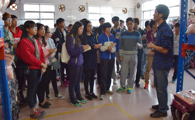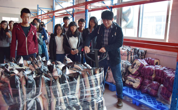 为培养具有管理基础知识、技能和技巧,理论联系实践,结合专业特点,16日下午,系主任李晓艳、管理教研室 物流管理教研室主任李宝苏老师和仓储中心主任王光辉老师亲自为学生们一一讲解和介绍,同学们好奇地看、用心地听、认真地记、主动地问,还有学生在14级实训师兄的指导下,体验了一把货物托盘上架到位训练,过了一把瘾。王老师说,仓储配送中心是潮汕学院物流产业学院实施学徒制人才培养,校企合作共建,实践化教学,实战化训练的企业平台,欢迎明年15级学生来基地实训实习。 通过见习和参观,学生们对企业的类型和性质有了初步认识,对企业管理的目标和任务有了一定了解。实践教学是贯彻落实“创新创业教育”的举措和行动,学生与企业零距离接触,培养学生具有初步的企业管理能力。 学生队伍进入基地参观 王光辉老师介绍基地情况 学生尝试机器操作 李宝苏老师为大家答疑解惑 参观基地绿化环境 报关专业师生合影